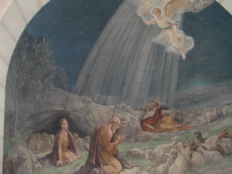 Beautiful painting done in an ancient cave in Bethlehem. Picture by Jozantonio 2006. BETHLEHEM.