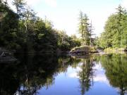 This picture was taken from my canoe, on a small river surrounded by woods. The reflection of the island trees in the water is beautiful and serene.