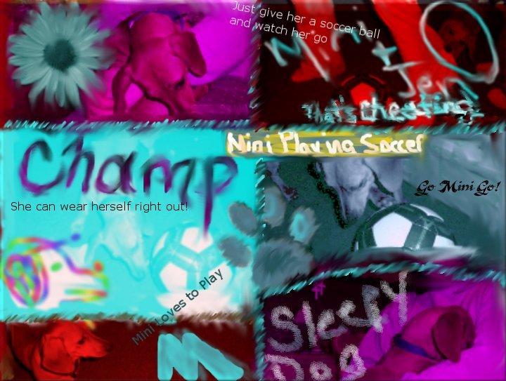 It's a scrapped page that I made for a challenge, it has a grunge art style. It's of my dog, playing soccer, and sleeping